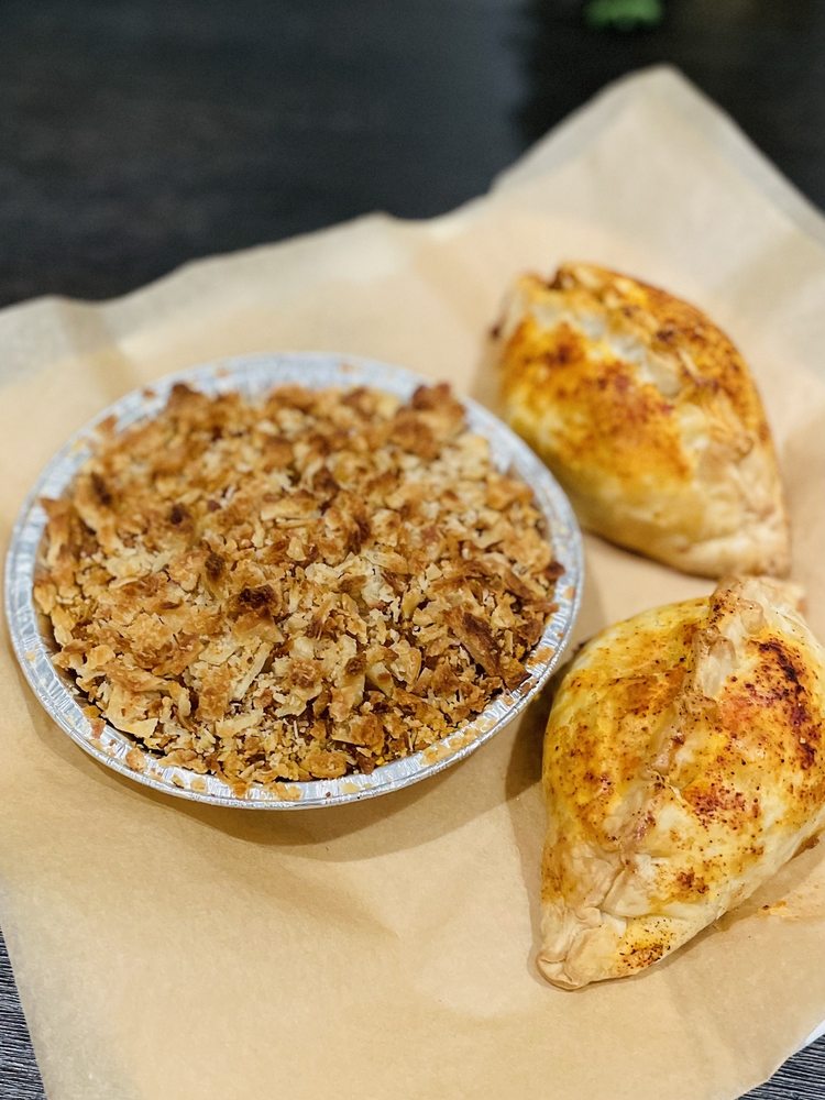 Mary's all natural, anti-biotic and hormone-free chicken, a ton of house-roasted red bell peppers, roasted garlic, fresh oregano and parsley. Nobody could accuse us of being authentic, that's for sure. Delicious, yes, traditional, no. Sold individually.
